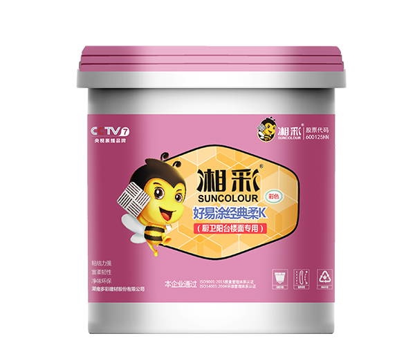湘彩好易涂经典柔K是拥有先进技术的有机复合型防水材料,涂料干固后形成一层坚韧富有柔韧性防水膜,该膜对混凝土和灰浆有良好的粘附性,能与之形成紧密牢固的永久性结合,阻止了水的渗透。不仅具有表面防水的作用,还具有一定的渗透性,能封闭水的通道,达到更佳的防水效果。